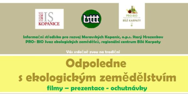Součástí festivalu je také „Odpoledne s ekologickým zemědělstvím“, které připravují Informační středisko pro rozvoj Moravských Kopanic, o.p.s. Starý Hrozenkov a PRO- BIO Svaz ekologických zemědělců, regionální centrum Bílé Karpaty.
